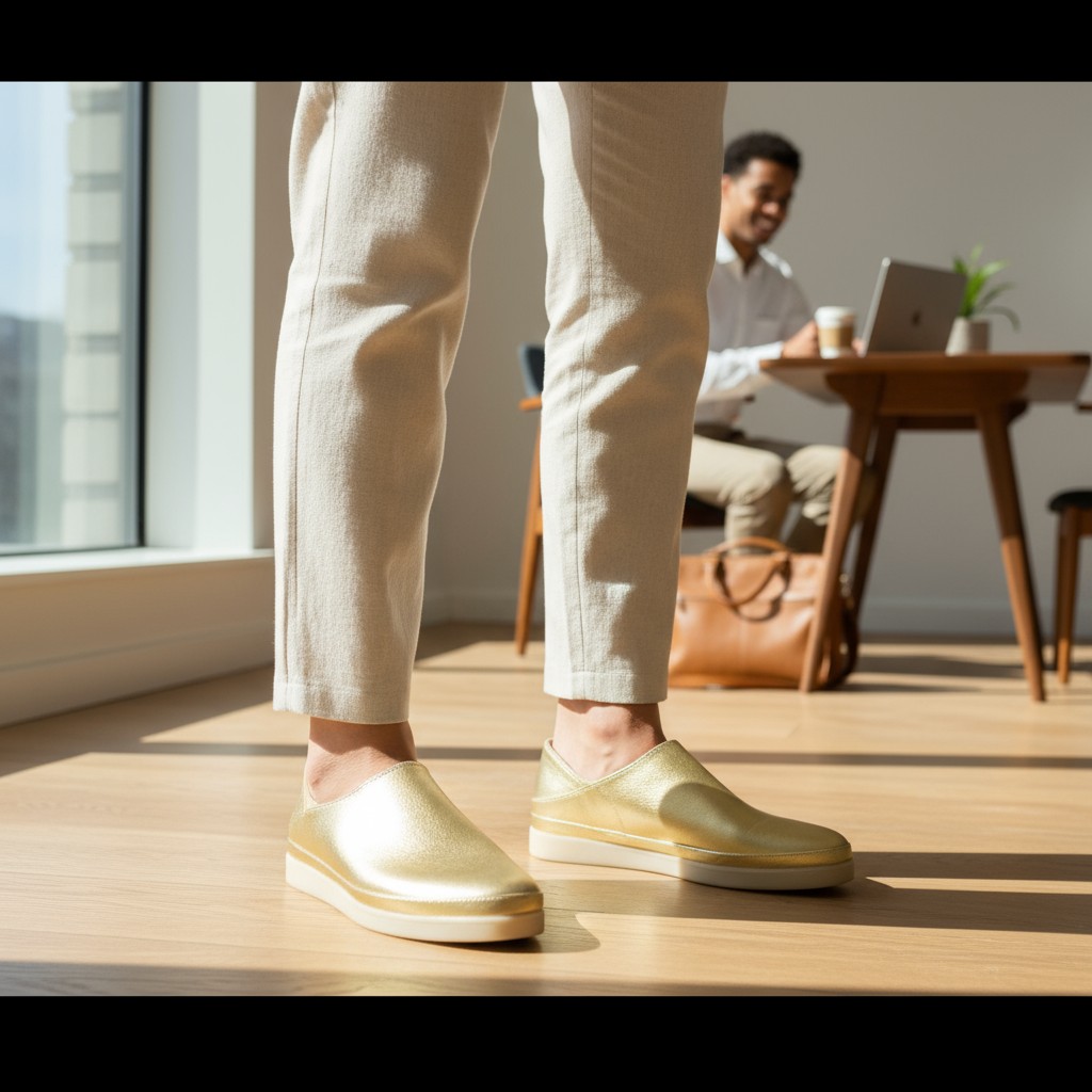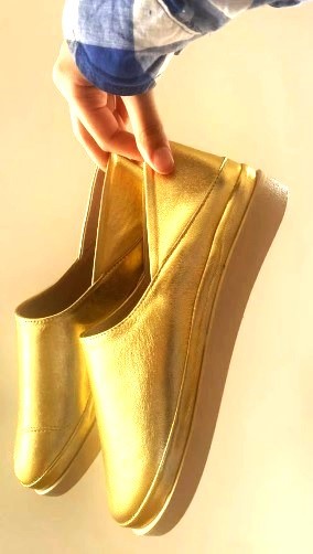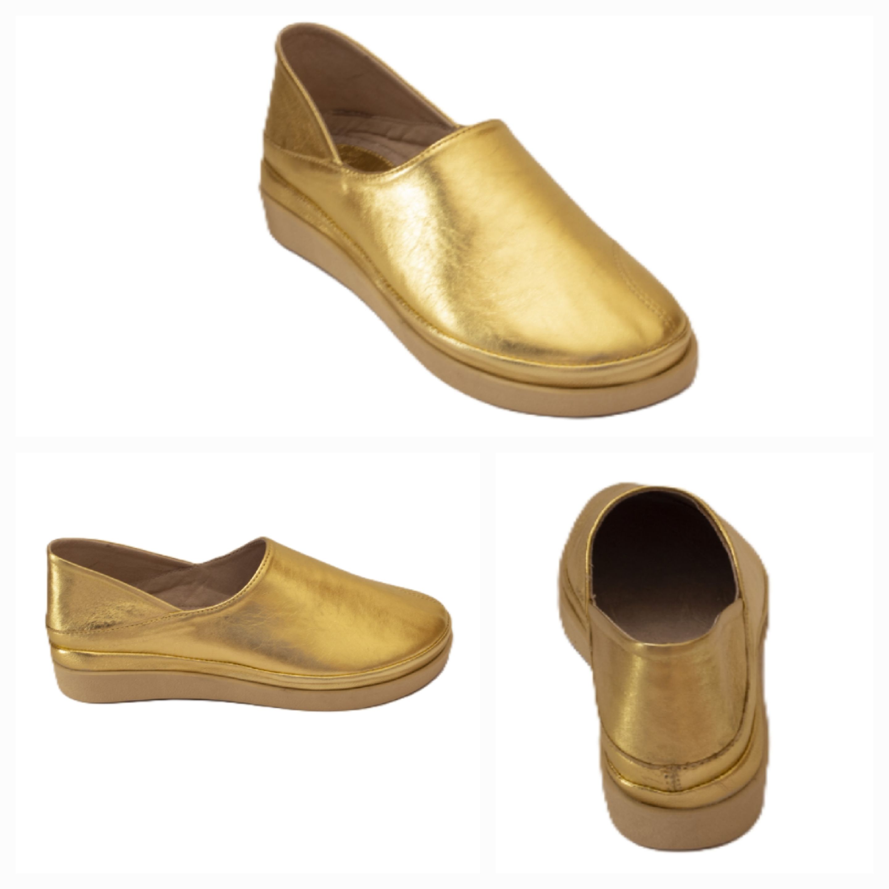 حذاء حريمي جلد طبيعي ذهبى